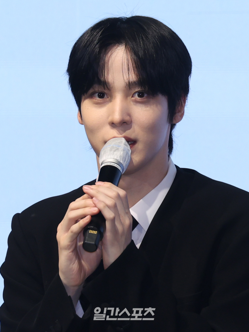 그룹 에이티즈(ATEEZ) 윤호가 5일 오후 서울 영등포구 페어몬트 앰배서더에서 열린 미니 13집 ‘골든 아워 : 파트 4(GOLDEN HOUR : Part.4)’ 발매 기념 기자간담회에서 인사말을 하고 있다.