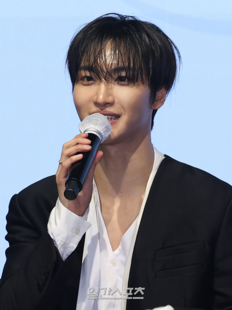 그룹 에이티즈(ATEEZ) 성화가 5일 오후 서울 영등포구 페어몬트 앰배서더에서 열린 미니 13집 ‘골든 아워 : 파트 4(GOLDEN HOUR : Part.4)’ 발매 기념 기자간담회에서 인사말을 하고 있다.