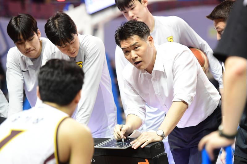 5일 서울 잠실실내체육관에서 열린 2025~26 프로농구 정규리그 서울 SK 원정 경기를 승리로 이끈 조상현 감독. KBL 제공
