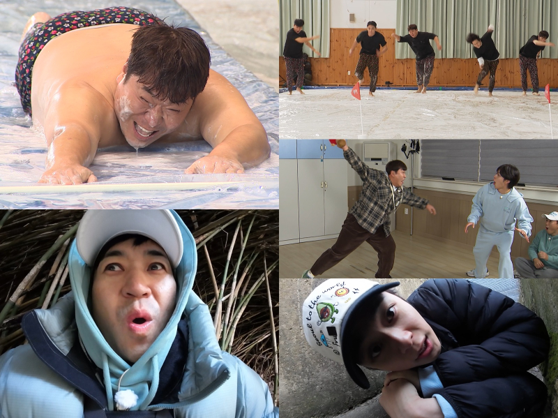 이날 푸짐하게 차려진 새조개 샤부샤부 한 상을 걸고 저녁 식사 복불복을 펼치게 된 ‘1박 2일’ 팀은 식사가 주어지는 상위권 순위에 들기 위한 불꽃 튀는 경쟁을 벌인다. 막판까지 치열한 접전이 전개된 가운데, 맏형 김종민을 시작으로 뒤이어 문세윤, 딘딘까지 상의를 훌렁 벗어던지며 저녁 식사를 향한 의욕을 불태운다. 사진=KBS2 제공. 특히 본인의 맨몸 노출을 매우 싫어하는 문세윤은 데뷔 이래 처음으로 상의 탈의한 모습을 공개한다. 처음 보는 문세윤의 완전한 상반신 노출에 멤버들은 “세윤이 형 상의 탈의한 거 처음 봐”라며 놀라움을 감추지 못했고, 그 충격적인 광경에 제작진마저 넋을 잃었다는 후문이다.
