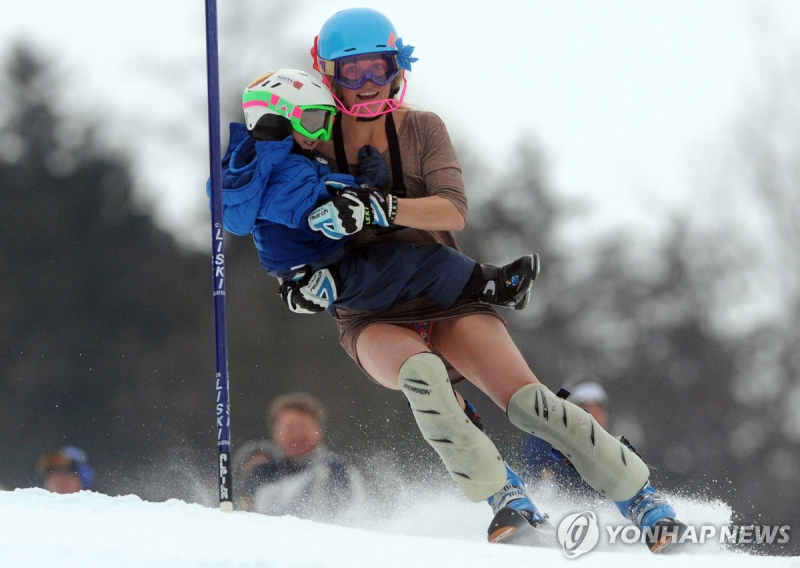 멕시코 알파인 스키 국가대표 사라 슐레퍼가 2011년 은퇴 경기에서 깜짝 이벤트로 당시 아들인 라시 각시올라를 안고 설원을 내려가고 있다. 이후 슐레퍼는 복귀해 선수 생활을 이어갔고, 아들 각시올라와 함께 2026 밀라노·코르티나 동계 올림픽에 함께 출전한다. EPA=연합뉴스 알파인 스키의 대표적인 장수 선수인 사라 슐레퍼(46)는 2011년 은퇴 경기에서 깜짝 이벤트로 아들인 라시 각시올라를 안고 설원을 내려왔다.
