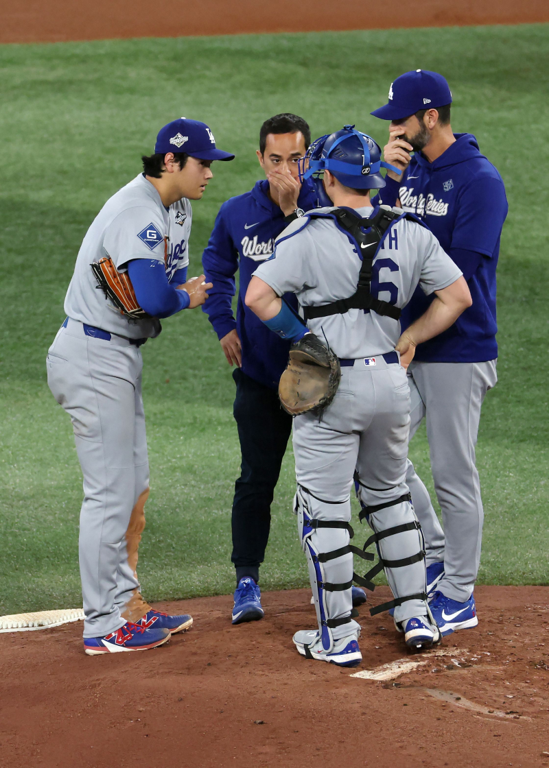 오타니는 올해 월드베이스볼클래식(WBC) 일본 대표팀으로 나서지만, 타자로만 나설 예정이다. 현재 불펜 투구를 통해 몸 상태를 차츰 끌어올려 WBC 합류 전에 타자를 상대로 라이브 피칭까지 마칠 계획이다. TORONTO, ONTARIO - NOVEMBER 01: (L-R) Shohei Ohtani #17 of the Los Angeles Dodgers talks with interpreter Will Ireton, Will Smith #16, and pitching coach Mark Prior during the second inning against the Toronto Blue Jays in game seven of the 2025 World Series at Rogers Center on November 01, 2025 in Toronto, Ontario. Patrick Smith/Getty Images/AFP (Photo by Patrick Smith / GETTY IMAGES NORTH AMERICA / Getty Images via AFP)/2025-11-02 09:48:18/ <저작권자 ⓒ 1980~2025 ㈜연합뉴스. 무단 전재 재배포 금지, AI 학습 및 활용 금지> 프라이어 코치는 "오타니의 가장 큰 매력은 자신의 등판일이 정해지면 마운드에 꼭 오른다"며 "3일 휴식, 6일 휴식, 8일 휴식이든 팀 승리를 위해 무엇이든 할 준비가 된 선수"라고 평가했다.