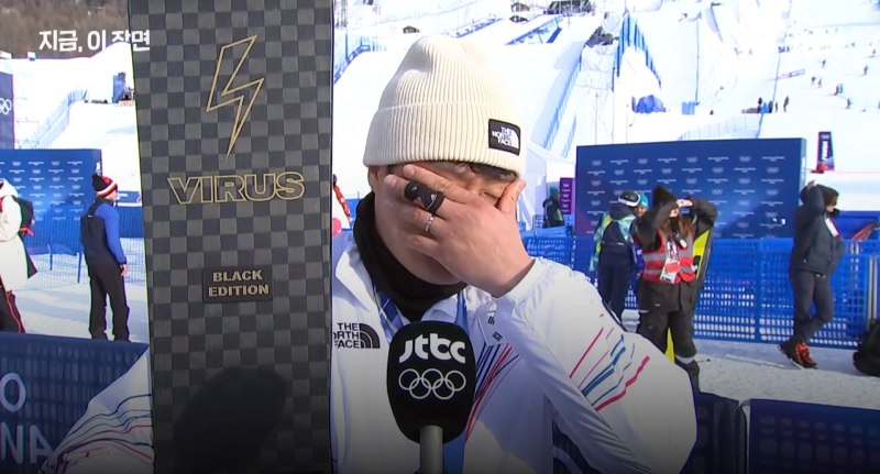 김상겸이 8일 리비뇨 스노파크에서 끝난 2026 밀라노-코르티나 동계올림픽 스노보드 남자 평행대회전 결승서 은메달을 따낸 뒤 플래시 인터뷰 중 아내를 떠올리며 눈물을 흘리고 있다. 사진=치지직 갈무리 스노보드 국가대표 김상겸(37·하이원)이 생애 첫 올림픽 메달을 따낸 뒤 가족을 떠올리며 눈물을 훔쳤다. 과거 선수 생활을 이어가기 위해 막노동까지 했던 그가 30대 후반의 나이에 한국 올림픽 역사의 이정표를 세웠다.