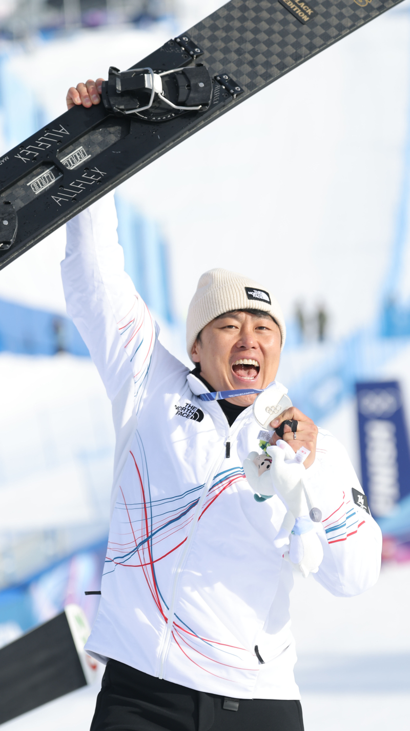 환호하는 김상겸 (리비뇨=연합뉴스) 류영석 기자 = 8일(현지시간) 이탈리아 리비뇨 스노파크에서 열린 2026 밀라노-코르티나담페초 동계올림픽 스노보드 남자 평행 대회전 결승 시상식에서 은메달을 따낸 김상겸이 스노보드를 들어올리고 있다. 2026.2.8 ondol@yna.co.kr/2026-02-08 23:49:04/ <저작권자 ⓒ 1980~2026 ㈜연합뉴스. 무단 전재 재배포 금지, AI 학습 및 활용 금지> 4번째 올림픽에 출전한 스노보드 남자 평행대회전 베테랑 김상겸(37·하이원)이 2026 밀라노·코르티나 동계올림픽에서 우리 선수단에 첫 번째 메달을 안겼다. 아무도 예상치 못한 '깜짝 은메달'이었다.
