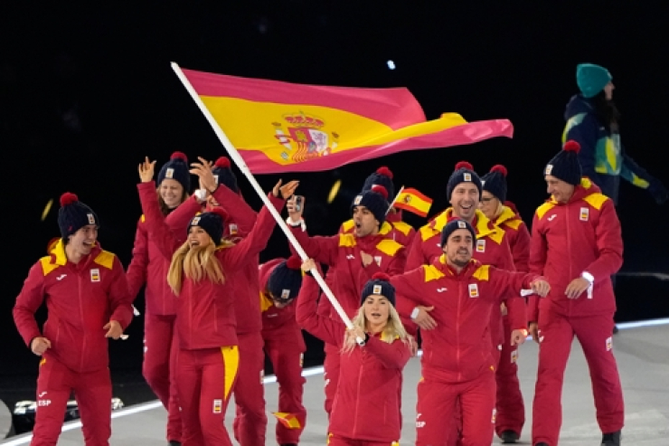 올리비아 소피 스마트(왼쪽). [로이터=연합뉴스]밀라노·코르티나담페초 동계올림픽에서 스페인 기수로 나선 올리비아 소피 스마트(가운데). [AP=연합뉴스]