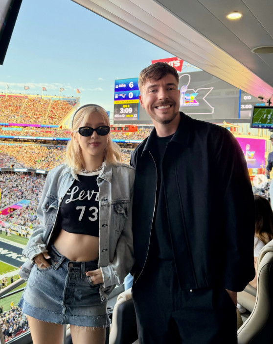 미스터비스트는 세계적인 스타들과의 현장 인증샷 중 로제와 찍은 사진을 메인 사진으로 배치해 눈길을 끌었다. 편안한 청청 패션에 선글라스를 끼고 여유롭게 카메라를 응시하는 로제 옆에 선 미스터비스트의 미소가 인상적이다. 로제와 미스터비스트는 각각 1997년생, 1998년생으로 한 살 차이다.