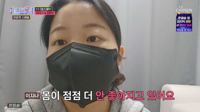 10일 방송된 TV조선 예능 ‘미스트롯4 미공개 스페셜’에서는 이지나와 김희진의 1:1 데스매치가 그려졌다.