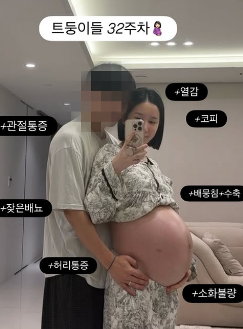 그룹 크레용팝 출신 초아가 쌍둥이 출산을 한달 앞둔 가운데 심각한 통증을 호소했다.