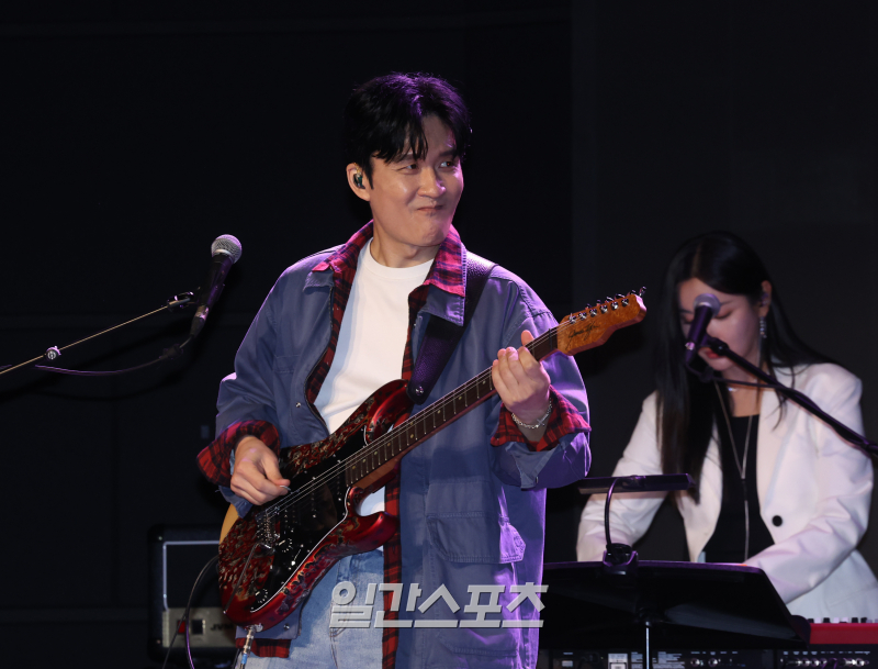 [포토] 아묻따밴드 전인혁, 차태현 보고 신난 표정
