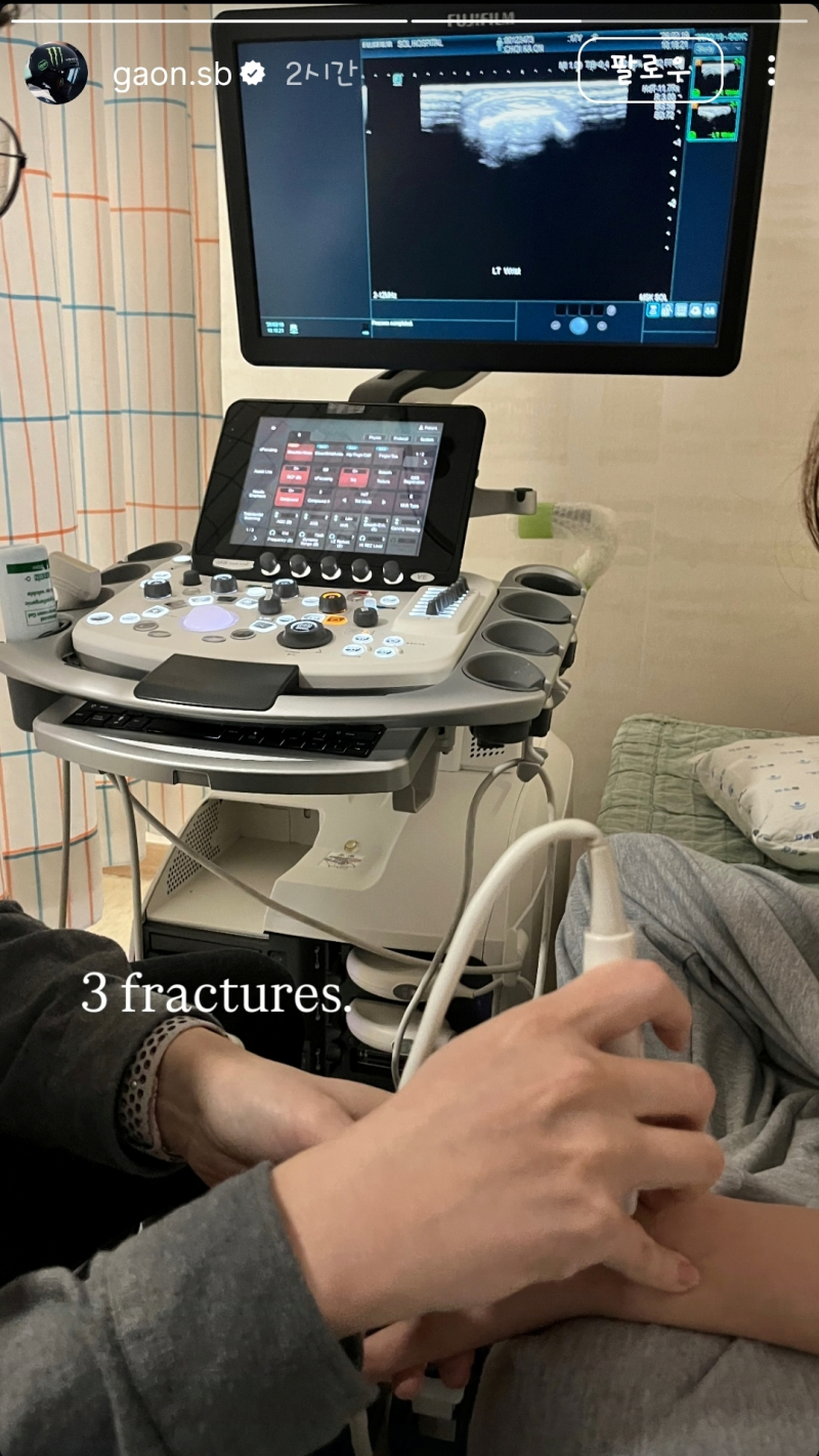 한국 설상 스포츠의 한 획을 그은 '금메달리스트' 최가온(18·세화여고)이 병원 검진 사진을 올렸다. 그가 남긴 단어는 "3 fractures." 세 곳의 골절을 의미하는 것으로 보인다.