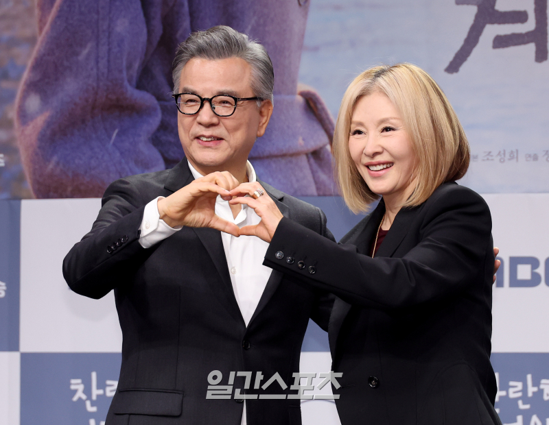 강석우와 이미숙이 19일 오후 서울 마포구 상암MBC에서 열린 MBC 새 금토드라마 ‘찬란한 너의 계절에’제작발표회에서 함께 포즈를 취하고 있다. 김민규 기자 mgkim1@edaily.co.kr /2025.02.19/ 배우 강석우와 이미숙이 40년 만에 재회한 소감을 밝혔다.