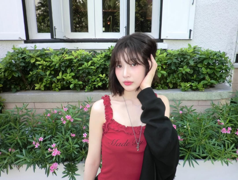 프릴 디테일이 더해진 레드 컬러 슬리브리스 상의는 조이의 맑은 피부 톤을 한층 돋보이게 한다. 자연스럽게 떨어지는 단발 헤어와 투명한 메이크업은 특유의 ‘과즙상’ 비주얼을 배가시키며 시선을 사로잡는다. 카메라를 향해 살짝 고개를 기울이거나 손으로 머리를 정리하는 포즈에서는 청량함과 도회적인 분위기가 동시에 묻어난다.