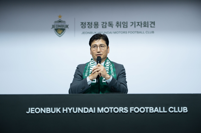 정정용 전북 신임 감독이 6일 전주월드컵경기장에서 열린 취임 기자회견서 소감을 밝히고 있다. 전북 제공