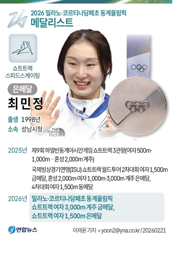 (밀라노=연합뉴스) 류영석 기자 = 20일(현지시간) 이탈리아 밀라노 아이스스케이팅 아레나에서 열린 2026 밀라노ㆍ코르티나담페초 동계올림픽 쇼트트랙 여자 1,500m 결승에서 은메달을 획득한 최민정이 금메달을 획득한 김길리를 축하해주고 있다. 2026.2.21 ondol@yna.co.kr/2026-02-21 08:21:55/ <저작권자 ⓒ 1980~2026 ㈜연합뉴스. 무단 전재 재배포 금지, AI 학습 및 활용 금지> 이재명 대통령이 2026 밀라노·코르티나 동계올림픽 한국 쇼트트랙 선수단에 "세계 최강임을 다시 한번 입증했다"며 축하를 전했다.