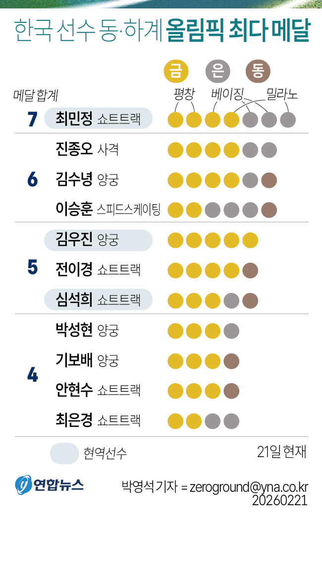 마지막 레이스에서 은메달를 딴 최민정은 한국 올림픽 역사상 최다 메달리스트(7개, 금 4개·은 3개)로 기록됐다. 삐끗하지 않았다면, 동·하계올림픽 사상 최다 금 타이기록(양궁 김우진 금 5개)과 동계올림픽 사상 최대 금 신기록까지 세웠을 터다. 그는 더 많은 기록, 부와 명예를 욕심내지 않았다.
