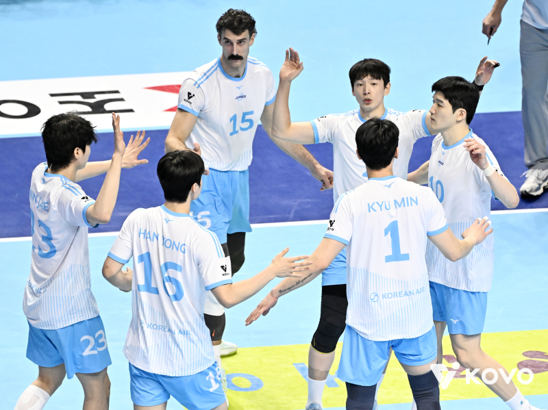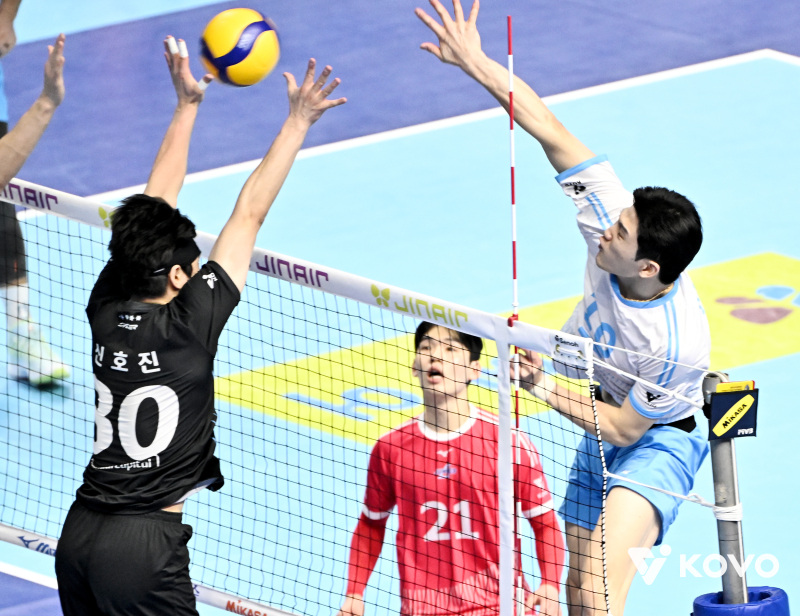 대한항공은 22일 인천 계양체육관에서 열린 진에어 2025~26 V리그 6라운드 첫 경기에서 현대캐피탈을 세트스코어 3-0(25-19, 25-16, 25-20)으로 완파했다. 승점 3을 얻은 대한항공(승점 60)은 현대캐피탈(승점 59)을 끌어내리고 1위 자리를 되찾았다. 이번 시즌 상대 전적에서도 3승 2패로 한 발 앞서갔다.