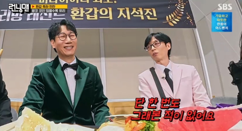 지석진도 “이런 일이 있었나 하는 미담이나 세상에 공표되지 않은 나의 아름다운 이야기”라고 강조했고, 하하와 양세찬은 “예전에 나이트에서 그런 미담없나. 부킹을 밀어줬다거나. 김용만 형이나 김수용 형에게 그랬다던지”라고 물었다.