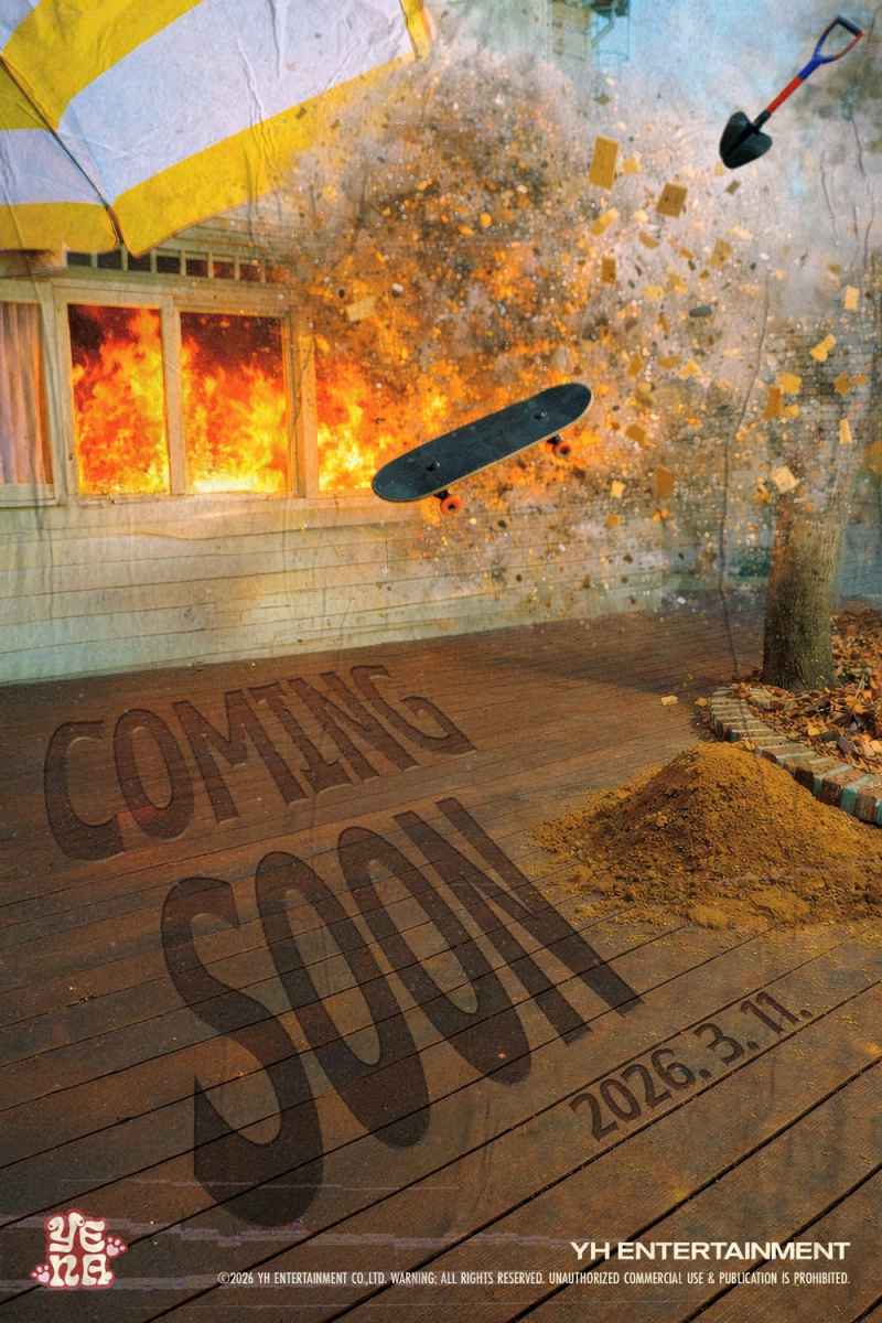 최예나는 23일 0시 공식 SNS를 통해 커밍순 이미지를 공개하며 오는 3월 11일 컴백을 공식화했다. 이미지에는 화염에 휩싸인 건물과 재로 사라져 가는 나무가 등장해 강렬한 분위기를 자아냈다. 그 위로 스케이트보드와 삽 등이 공중에 날아가는 듯한 요소가 더해져 폭발적인 긴장감과 극적인 장면을 완성했다.