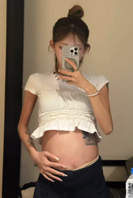 공개된 사진 속 최준희는 크롭 티셔츠 차림으로 거울 앞에 서 배를 드러낸 모습이다. 설 연휴 음식을 즐겼다며 “배 빵빵, 라인 실종. 하복부 묵직. 근데 그대로 두면 진짜 봄에 후회함”이라고 덧붙이며 유쾌한 자기 고백을 전했다.