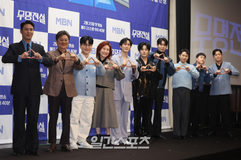 25일 오전 서울 마포구 상암 스탠포드 호텔에서는 MBN 새 경연 프로그램 ‘무명전설-트롯 사내들의 서열전쟁’(이하 ‘무명전설’) 제작발표회가 진행됐다. 이 자리에는 장민호, 김대호, 남진, 주현미, 조항조, 신유, 강문경, 손태진, 임한별, 양세형과 연출자 김우진 PD가 참석했다.
