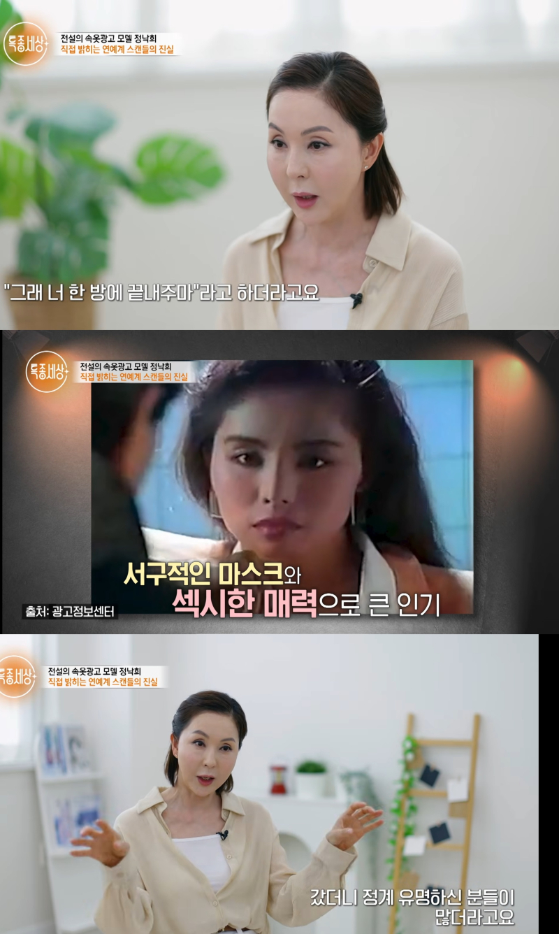 90년대 속옷 광고로 큰 인기를 얻었던 모델 겸 배우 정낙희가 자신을 둘러싼 과거 스캔들에 대해 입을 열었다.