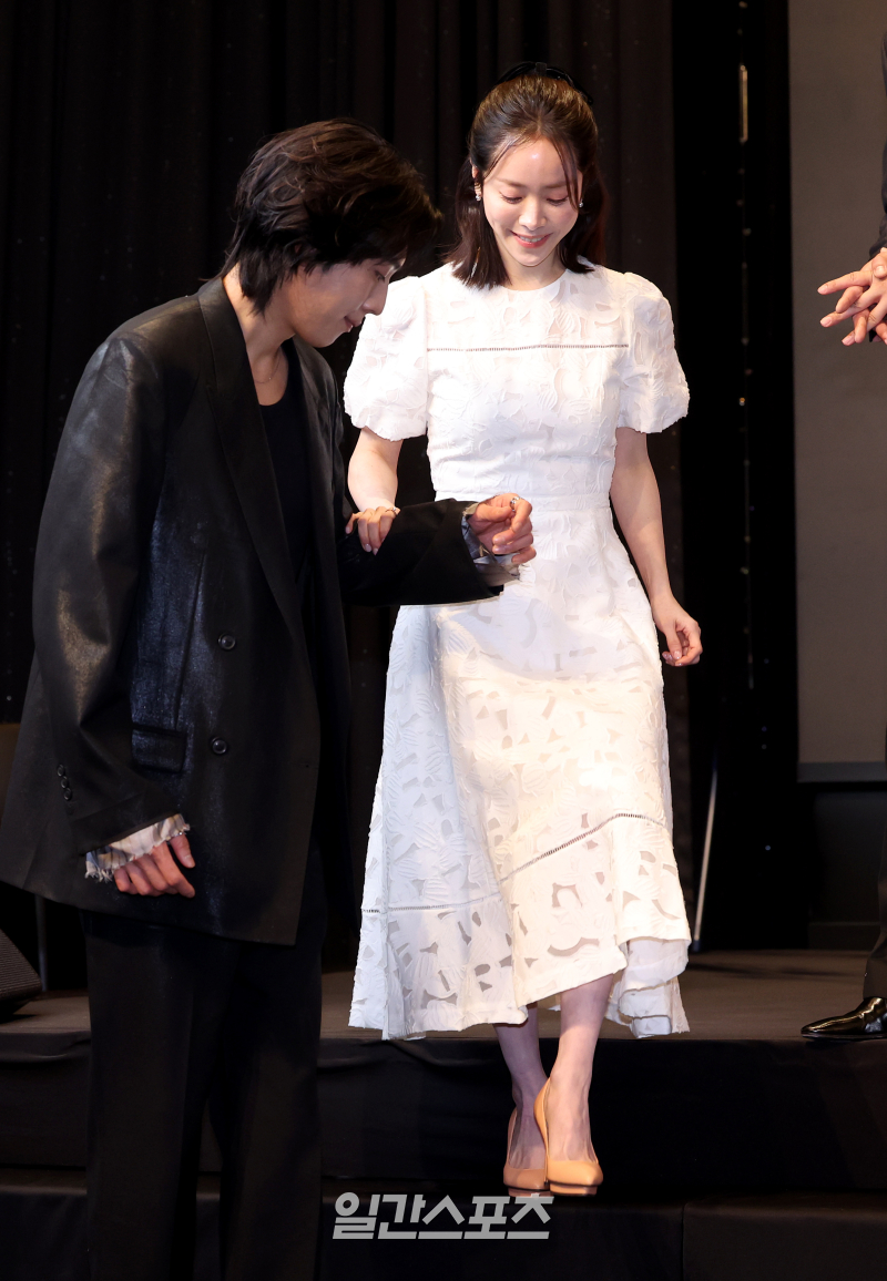 [포토]한지민, 이기택의 에스코트 속 '조심조심'