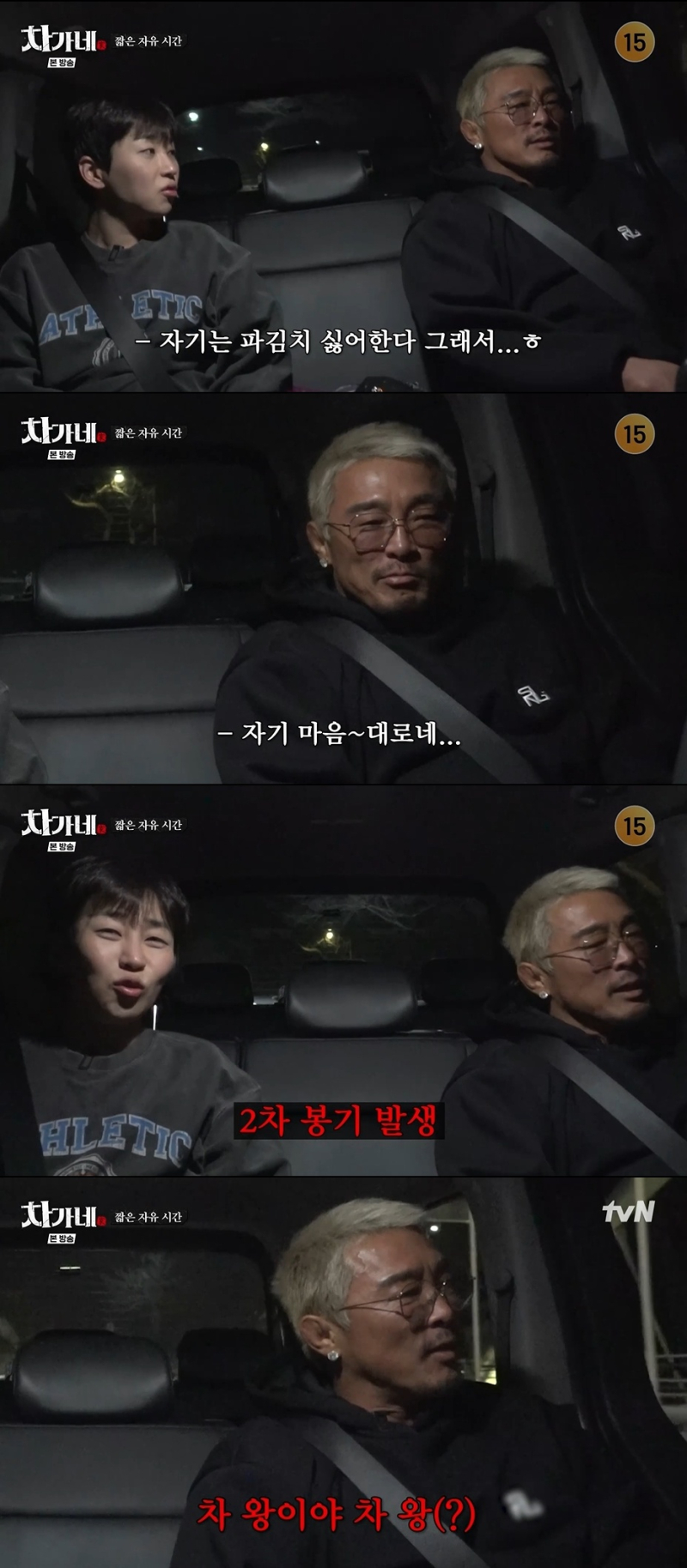 특히 딘딘은 파김치를 만들고 싶다고 했지만 차승원이 “내가 파김치 싫어하니까 안 된다”고 했던 일화를 전했다. 이에 추성훈은 “자기 마음대로네. 완전 왕이다. 차 왕”이라며 웃음을 터뜨렸다.