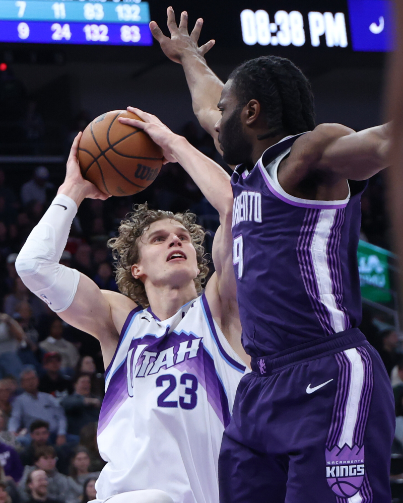 Utah Jazz forward Lauri Markkanen (23) goes to the basket against Sacramento Kings forward Precious Achiuwa (9) during the second half of an NBA basketball game, Wednesday, Feb. 11, 2026, in Salt Lake City. (AP Photo/Rob Gray)/2026-02-12 13:42:55/ <저작권자 ⓒ 1980~2026 ㈜연합뉴스. 무단 전재 재배포 금지, AI 학습 및 활용 금지>