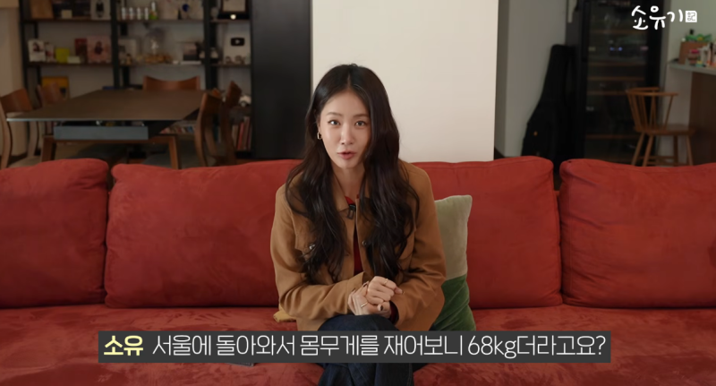 특히 소유는 “현재 몸무게는 49kg이다. 다이어트 전 최대 몸무게는 68kg이었다”며 “다들 10kg 감량한 줄 아시는데 정확히 따지면 20kg 감량한 거다. 그러면 얼굴형이 변하겠냐, 안 변하겠냐”고 쿨하게 해명했다. 사진=유튜브 채널 ‘소유기’ 소유는 “68kg이라는 사실을 말을 안 한 이유는 나 자신이 너무 수치스러웠다”며 “충격 받고 열심히 뺐다. 작년 4월 54kg에서 56kg에서 안 빠지더라. 고민하다가 근육을 뺐다”고 운동 루틴도 공개했다, 유산소 운동 비중을 높혔다는 설명이다.