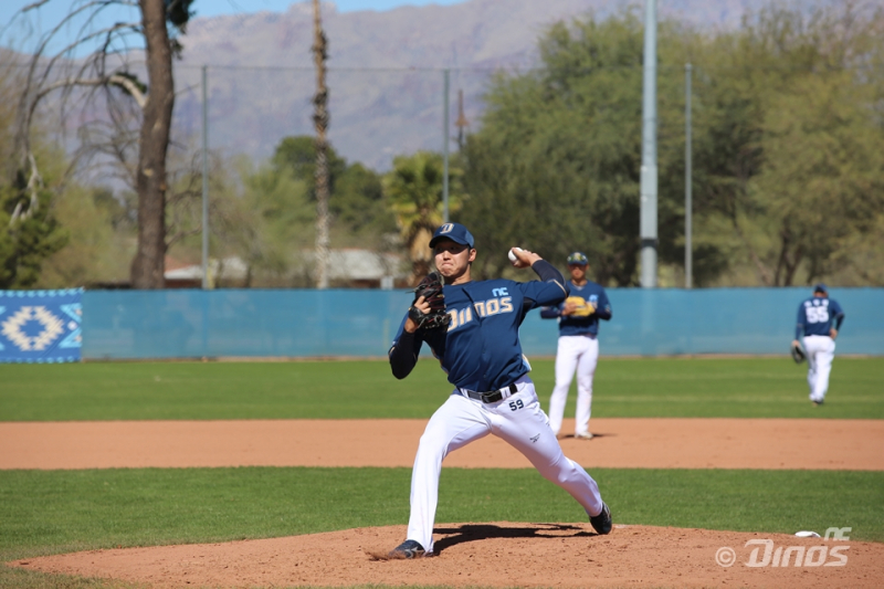 지난 22일 자체 청백전에서 2이닝 동안 4피안타 4실점, 최고 구속 143㎞/h로 부진했던 구창모는 두 번째 실전 등판에선 호투했다.