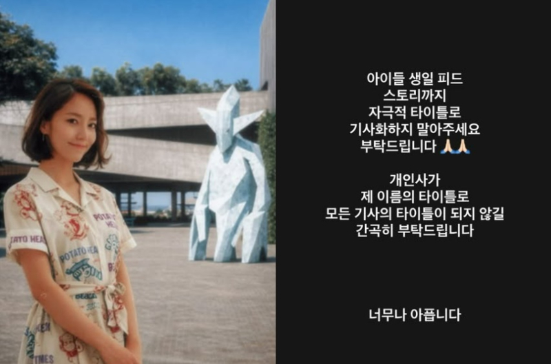 이어 “개인사가 제 이름의 타이틀로 모든 기사의 타이틀이 되지 않길 간곡히 부탁드린다”며 “너무 아프다”고 덧붙였다.