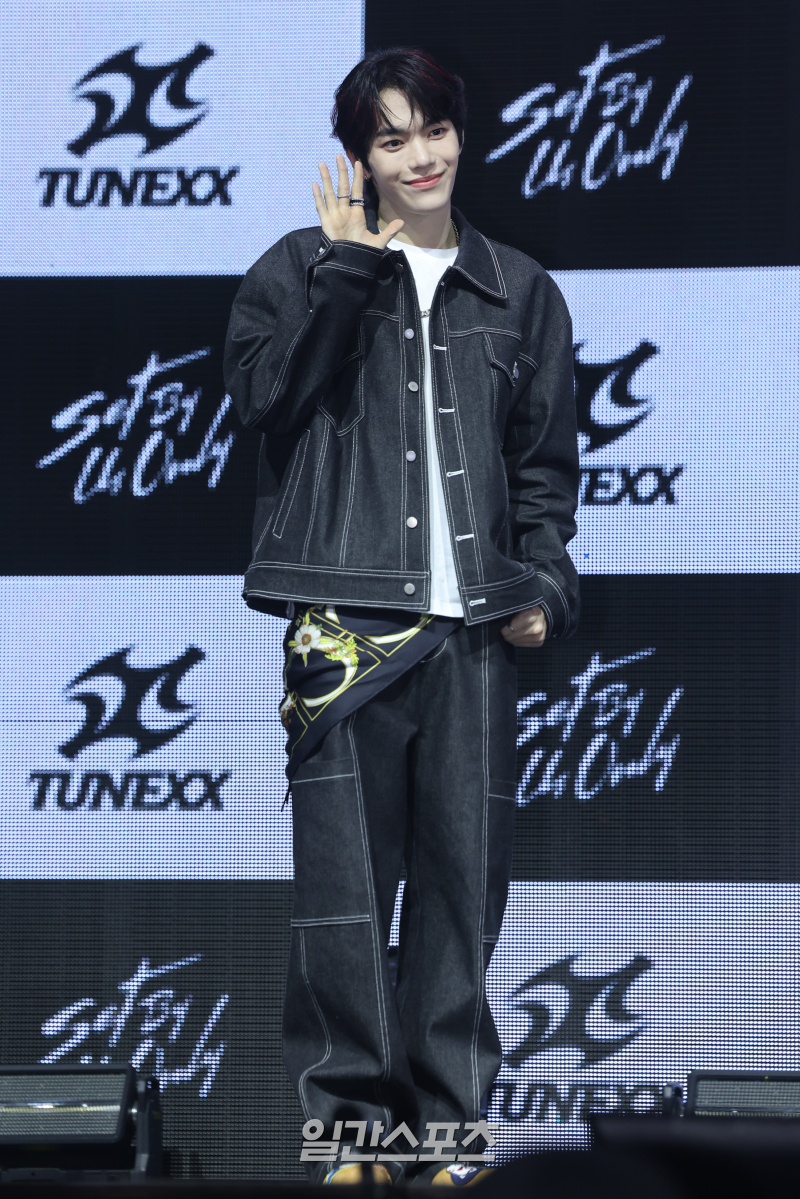 튜넥스(TUNEXX) 동규가 3일 오후 서울 광진구 예스24라이브홀에서 열린 첫 번째 미니앨범 'SET BY US ONLY(셋 바이 어스 온리)' 발매 기념 쇼케이스에 참석해 포토타임을 갖고 있다.