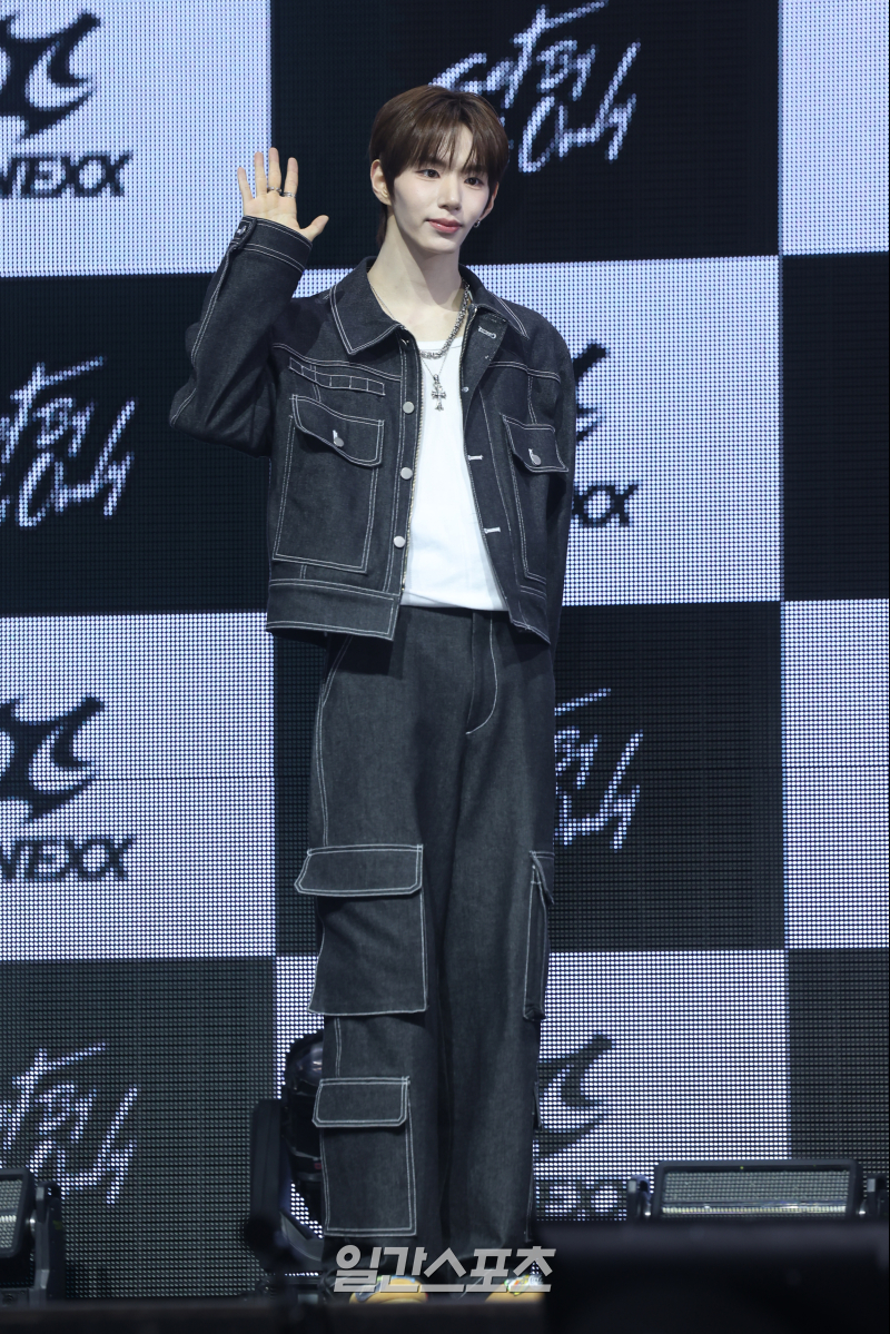 튜넥스(TUNEXX) 성준이 3일 오후 서울 광진구 예스24라이브홀에서 열린 첫 번째 미니앨범 'SET BY US ONLY(셋 바이 어스 온리)' 발매 기념 쇼케이스에 참석해 포토타임을 갖고 있다.