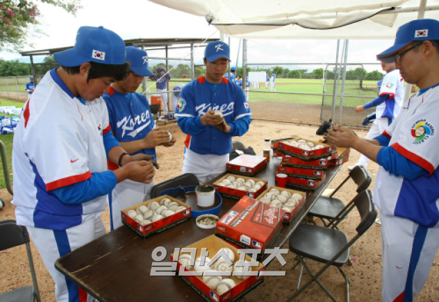 [ 2009 WBC 야구대표팀 하와이 전지훈련 ] 19일 오전(한국시간) 미국 하와이 센트럴오아후구장에서 열린 월드베이스볼클래식 (WBC) 야구대표팀 전지훈련에서 운영요원들이 공인구에 진흙을 바르고 있다. IS 포토