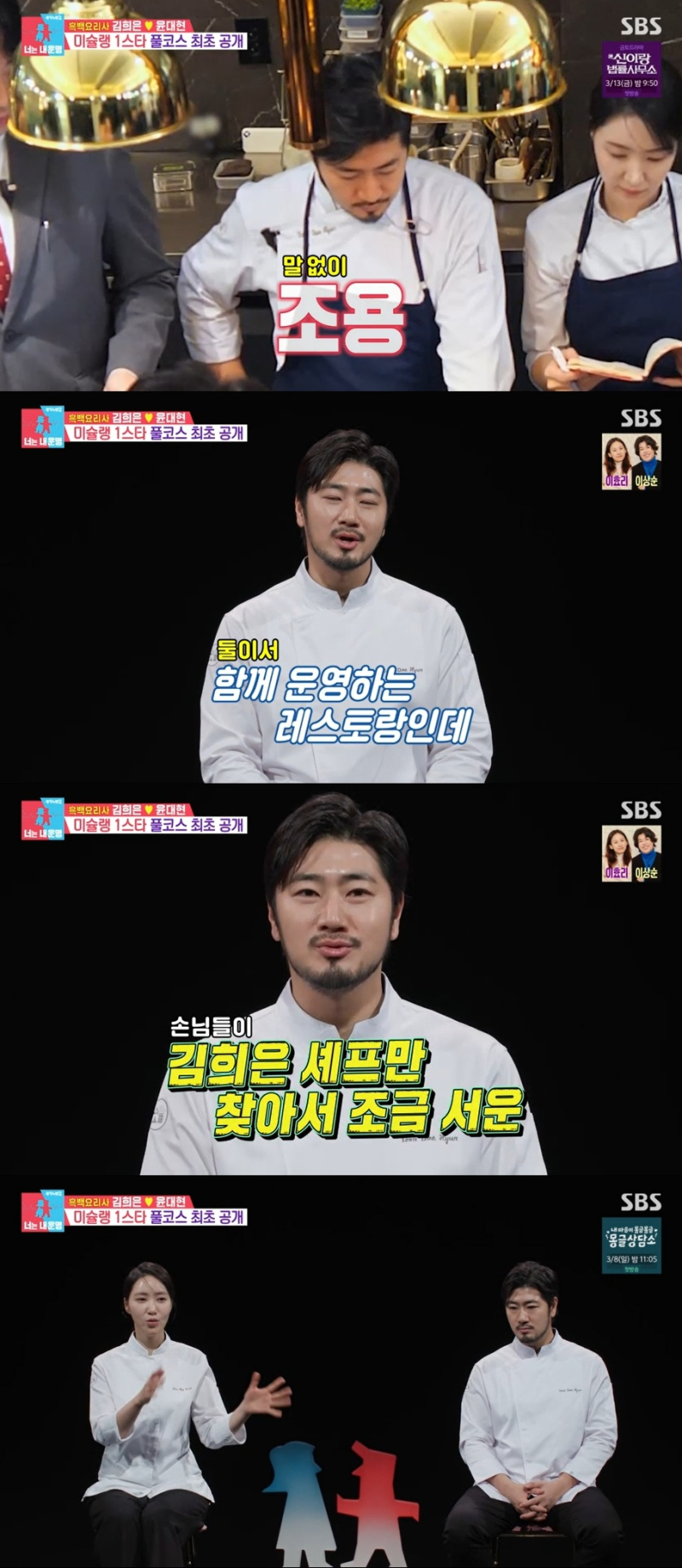 3일 방송된 SBS 예능 프로그램 ‘동상이몽2- 너는 내 운명’에는 미슐랭 1스타 셰프 부부 김희은, 윤대현이 게스트로 출연했다.