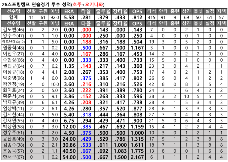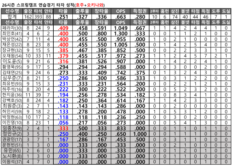 호주에서 일본으로 이어지는 훈련을 차질 없이 치른 한화 선수단은 내부 경쟁으로 인한 팽팽한 긴장감을 유지하며 귀국하게 됐다. 특히 19세 신인 신인 오재원과 최유빈도 1,2차 캠프를 완주할 만큼 성장했다. 오재원은 연습경기에서 팀 내 가장 많은 11안타를 기록했고, 최유빈은 내야 유틸리티 자원으로서 존재감을 드러냈다.