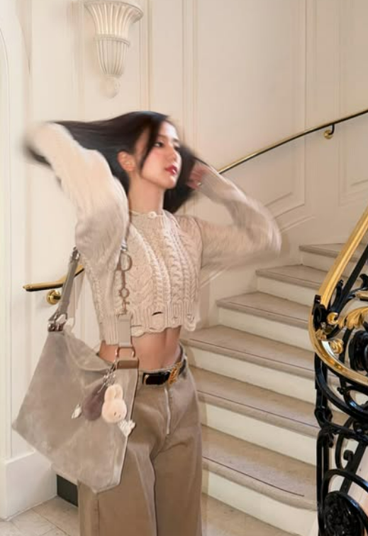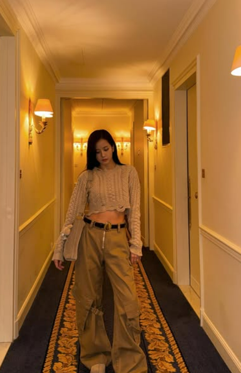 특히 지수는 탄탄한 복근이 슬쩍 드러나는 베이지색 크롭 꽈배기 니트에 와이드한 카고 팬츠를 매치해 ‘꾸안꾸(꾸민 듯 안 꾸민 듯)’ 패션의 정석을 보여줬다. 여기에 귀여운 토끼 인형 키링이 달린 숄더백을 메고 자유분방한 분위기를 더했다.