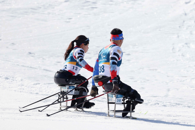 2026 밀라노·코르티나 동계패럴림픽 경기에 앞서 함께 훈련한 김윤지와 신의현. 사진=공동취재단