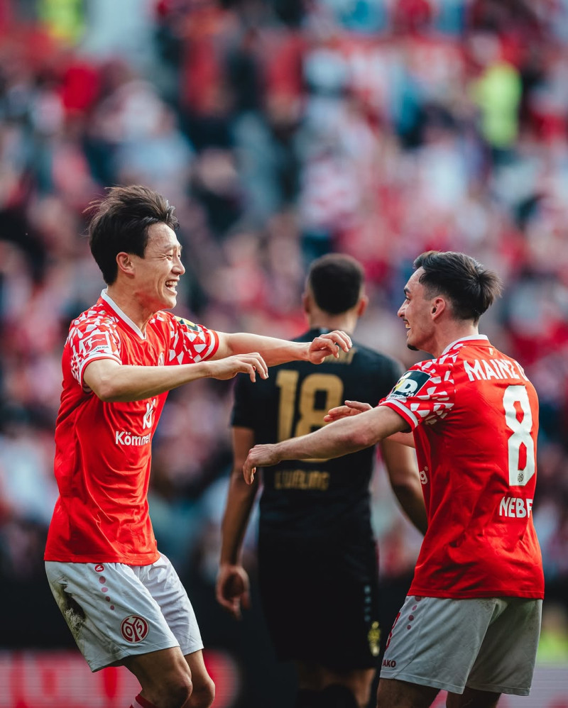 7일 MEWA 아레나에서 열린 마인츠와 슈투트가르트의 2025~26 분데스리가 25라운드 경기 중 이재성(왼쪽)이 선제골을 넣고 네벨과 환호하고 있다. 사진=마인츠 SNS 국가대표 출신 미드필더 이재성(33·마인츠)이 3개월 만에 시즌 5호 골을 신고했지만 팀은 3경기 연속 무승부에 그쳤다.