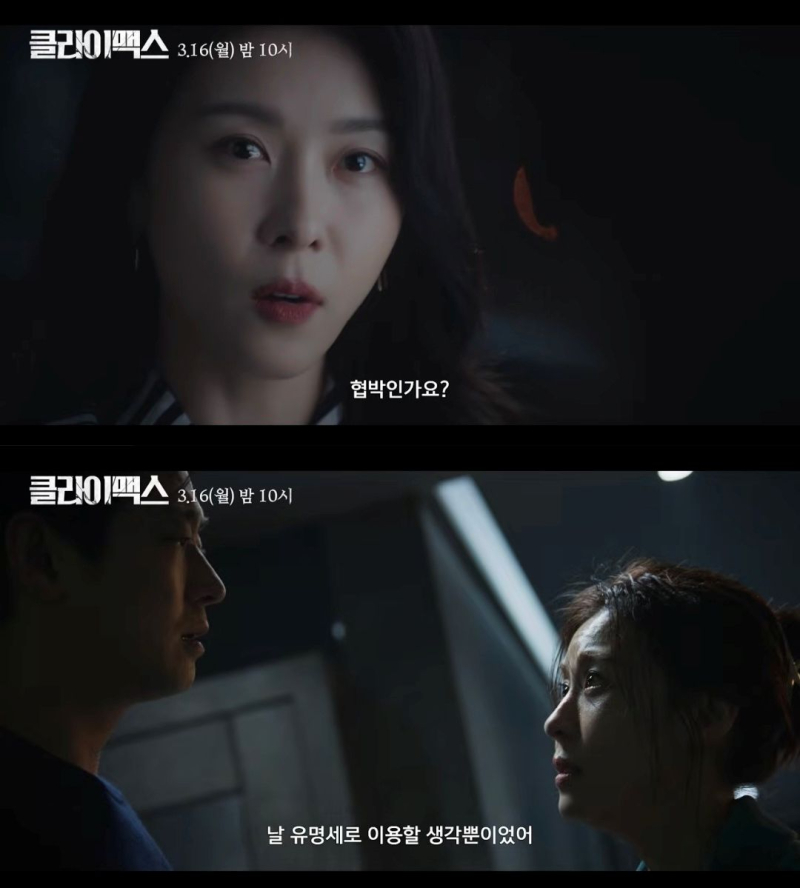 김성수 대중문화 평론가는 “하지원은 스릴러와 액션 등 장르물에서 굉장히 독보적인 배우이고, 로맨스에서도 불리한 조건을 돌파하는 당찬 여성을 연기 해왔다”며 “시간이 흘러 나나, 차주영 등 그와 포지션을 공유하는 후배들이 늘어난 가운데 하지원이 진검승부에 나선 것이다. 여전히 여배우들의 배역이 한정적인 드라마계에서 하지원의 도전적인 복귀는 의미 있게 지켜봐야 할 것”이라고 짚었다. ENA 월화드라마 ‘클라이맥스’ (사진=하이브미디어코프, SLL) 앞서 ‘아너: 그녀들의 법정’으로 시청률 순풍을 탄 ENA 월화극의 흐름을 이어 나갈지도 주목된다. 이번엔 ‘내부자들’(2015), ‘야당’(2025) 등 장르물에 강한 제작사 하이브미디어코프가 함께하는 만큼 ‘클라이맥스’는 특히 ENA 역대 월화 드라마 중에서도 역대급 수위를 자랑한단 후문이다.