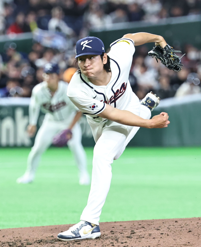 8일 일본 도쿄돔에서 열린 2026 WBC 조별리그 C조 3차전 대한민국과 대만의 경기. 4회초 교체된 한국 곽빈이 역투하고 있다. 사진=연합뉴스