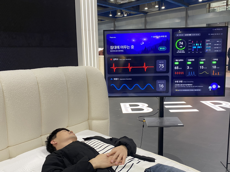 스마트워치처럼 웨어러블 기기를 차고 자는 게 아니라 평소처럼 누워서 수면을 취해도 스마트 매트리스는 알아서 평균 심박수와 코골이·뒤척임 횟수 등을 측정한다.