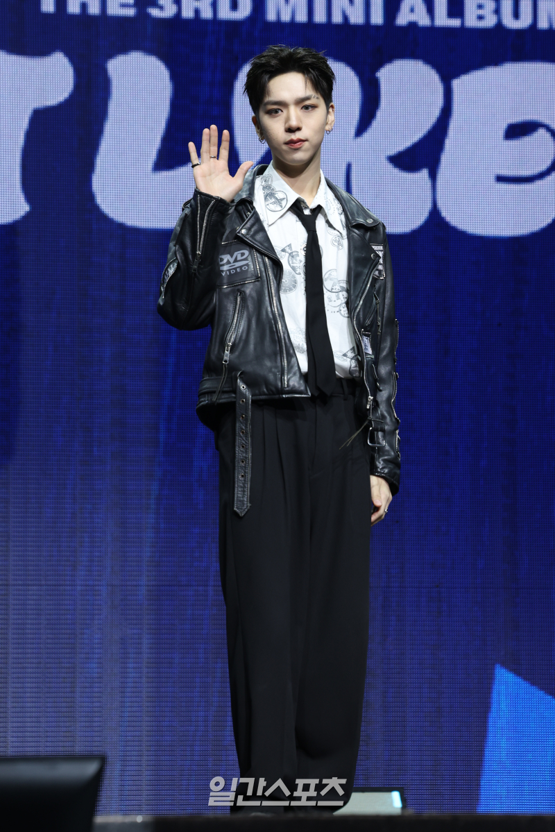 누에라(NouerA) 현준이 9일 오후 서울 광진구 예스24라이브홀에서 열린 세 번째 미니앨범 'POP IT LIKE(팝 잇 라이크)' 발매 기념 쇼케이스에 참석해 포토타임을 갖고 있다.