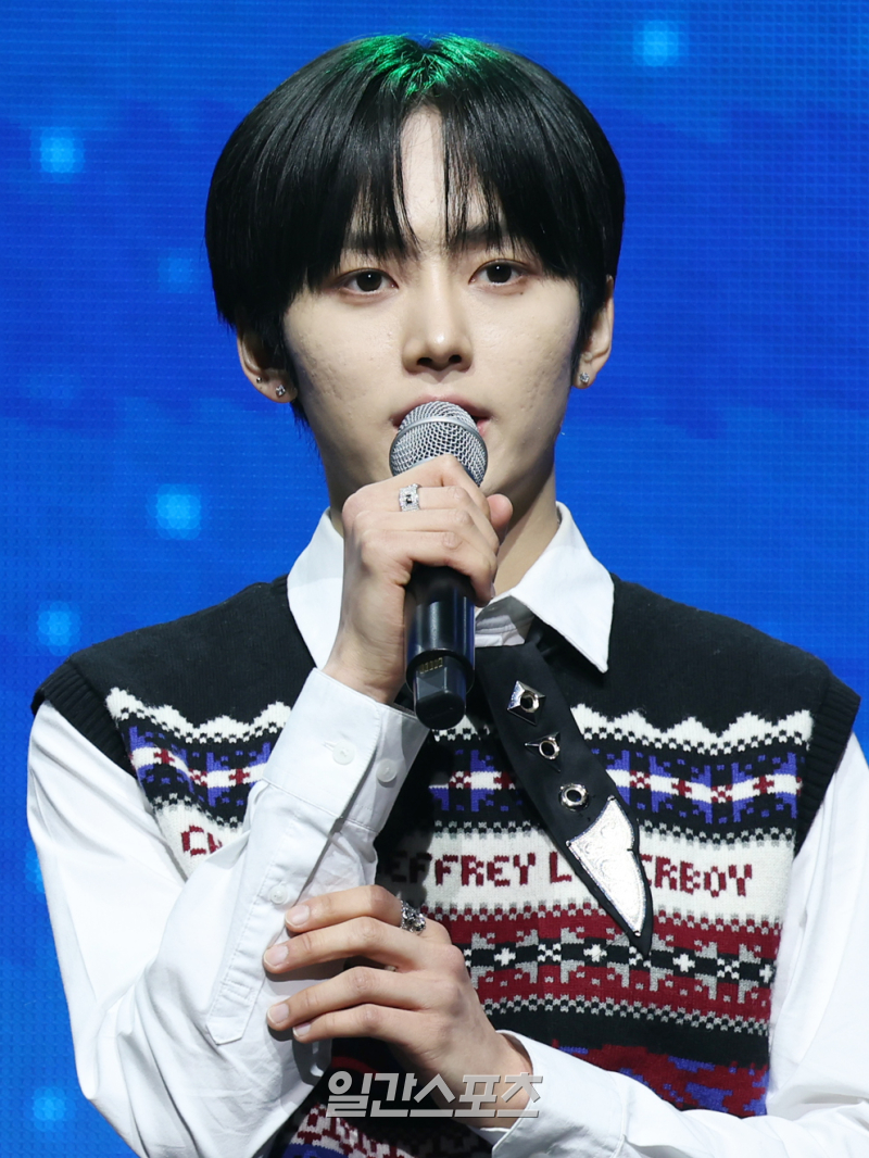 누에라(NouerA) 린이 9일 오후 서울 광진구 예스24라이브홀에서 열린 세 번째 미니앨범 'POP IT LIKE(팝 잇 라이크)' 발매 기념 쇼케이스에 참석해 인사말을 하고 있다.