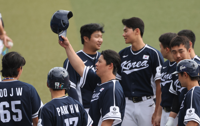 노시환은 대표팀 오키나와 캠프가 한창이던 2월 말 한화와 11년 총액 307억원의 KBO 역대 최장·최고액 계약을 체결했다. 이번 대표팀의 '비행기 세리머니'도 그의 머릿속에서 나왔다. 노시환은 "나만 잘하면 될 것 같다"고 말했다.