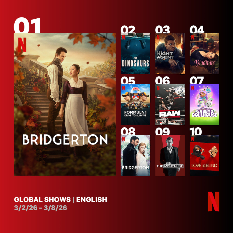 11일 넷플릭스 투둠 웹사이트에 따르면 오리지널 시리즈 ‘브리저튼4’는 지난주(3월 2일~8일) 1310 시청수(시청시간을 작품의 총 러닝타임으로 나눈 값)를 기록하며 글로벌 톱10 TV쇼(영어) 부문 1위에 랭크됐다.