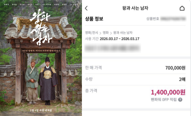 한 X(구 트위터) 사용자는 장당 70만원에 거래 중인 ‘왕사남’ 흥행 감사 무대인사 티켓을 인증하며 “진짜 미친 거냐. 누가 영화 무대인사를 140만원에 파느냐. 무대인사 그냥 안 보고 말겠다”며 분노를 표했다.
