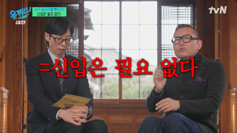 김대식 교수가 AI로 인해 채용 시장이 얼어붙을 거로 예측했다.