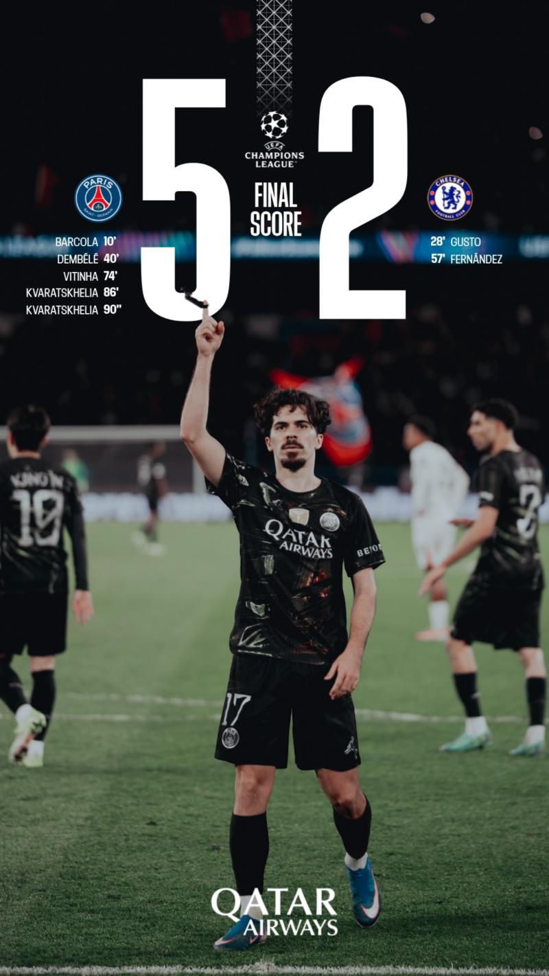 PSG는 12일(한국시간) 프랑스 파리의 파르크 데 프랭스에서 열린 첼시와의 2025~26 UCL 16강 1차전서 5-2로 크게 이겼다. 홈팀은 오는 18일 예정된 2차전서 3골 차라는 유리한 고지를 점하며 8강 진출 가능성을 키웠다.