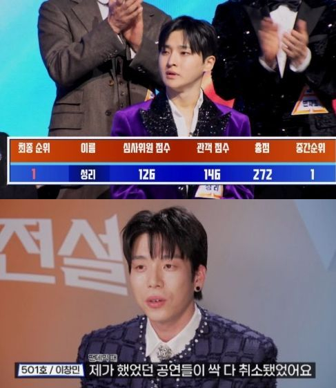 ‘유명선발전’은 이미 인지도를 갖춘 참가자들이 모인 만큼 더욱 혹독한 룰이 적용됐다. ‘무명선발전’은 절대평가였지만, ‘유명선발전’은 상대평가로 탑프로단 점수 130점과 국민 프로단 점수 170점이 합산돼 최종 순위가 결정되며, 총 18명의 유명 도전자 중 10위까지만 생존하고 나머지 8명은 탈락 후보가 된다. ‘무명전설’ (사진=MBN 캡처) 이날 눈길을 끈 건 발라드 그룹 2AM의 이창민이다. 지금까지 약 100곡의 트로트를 작곡해 온 그는 팬데믹 시절 모든 공연이 취소되는 등 어려움을 겪으며 곡을 방문판매까지 했던 사연을 전했다. 이어 “내 곡을 나보다 잘 설명해 줄 사람은 없다”라며 트롯에 도전하게 된 이유를 밝혔다. 나훈아의 ‘울긴 왜 울어’를 선곡해 트롯 특유의 꺾기를 살린 간드러지면서도 시원한 보컬로 무대를 장악하며 탑프로단 점수 112점을 기록했다.